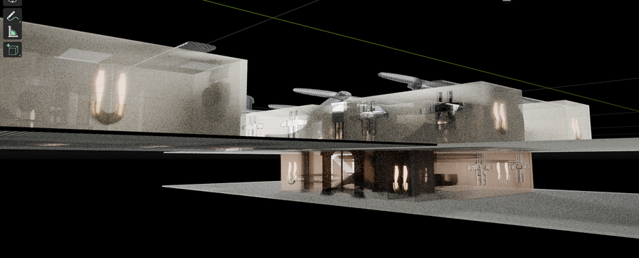 Infrastructure-led storytelling whereby spatial design is informed by aviation morphology and BIM modelling. This project explores how aviation engineering logic can inform spatial environments. Structural morphology from jet engines, intake ducts, and topology-optimised aircraft components was translated into a virtual hangar environment integrating infrastructure, circulation, lighting, and human workflow to produce an immersive experience for the viewer. Using BIM modelling, the design treats infrastructure as part of the spatial language rather than a hidden system, interacting with the project’s aviation identity at every level.