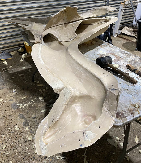 During my internship at Simon the Stuffa's, I made a fibreglass mould for a baby giraffe, and ran it to produce the foam base for pinning the skin around.