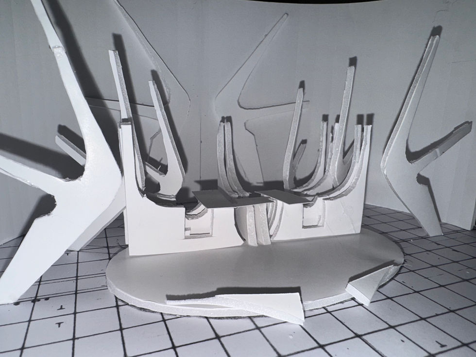 The first was for the late night entertainment show, Qi, for which I drafted a visual, elevation and card model which demonstrates a dynamic set for the show's upcoming letter of the year 'X'.